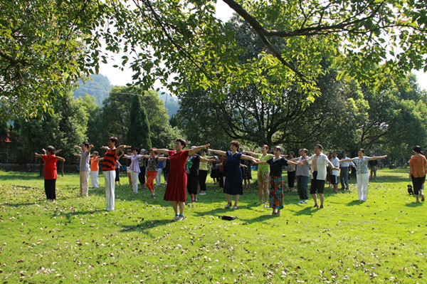 此次活動共有120多名體協(xié)會員參加,大家都想借此機會和大自然來個親密接觸,體協(xié)委員利用休息時間為大家采購了豐富美味的食物。利用新世紀(jì)綠草地依山伴水的地理資源優(yōu)勢,在秋日和煦的陽光下,在風(fēng)景秀麗的南明湖邊,我們老年人在綠草地上展現(xiàn)了 “年輕人”舞步,跳著佳木斯健身操動作,擺動雙臂,邁開雙腳,走出健康,走出幸福。當(dāng)走進餐廳看見桌子上擺好的餃子皮和餃子餡,老同志們便紛紛摩拳擦掌,躍躍欲試。他們各自分工后便熱火朝天的忙起來,現(xiàn)場笑聲不斷。