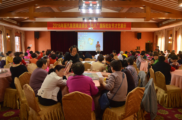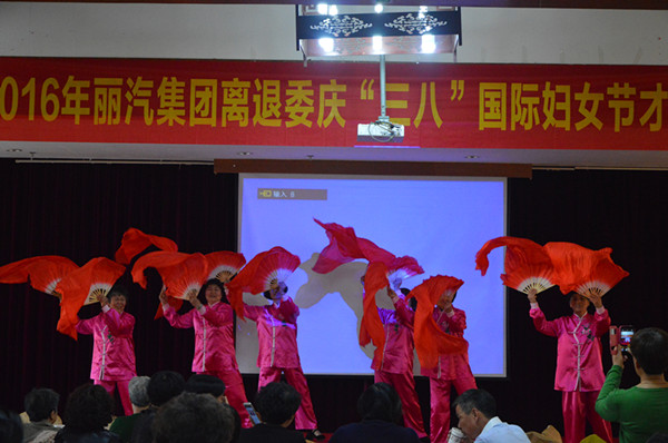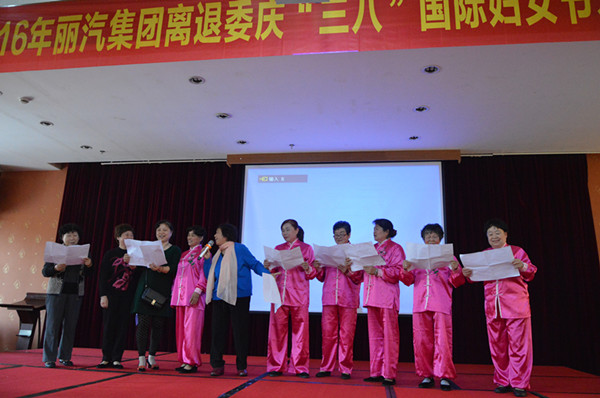 為慶祝第106個國際婦女節(jié),展示離退休女職工的風(fēng)采,今天上午,麗汽集團(tuán)離退委在八一賓館舉行慶“三八”國際婦女節(jié)才藝展示活動,260余名離退休女職工表演了扇子舞、排舞、詩朗誦、太極表演、獨(dú)唱、合唱、腰鼓、三句半等節(jié)目,既展示了離退休職工的精神風(fēng)貌,也展示了他們豐富多彩的退休生活。全體人員起立合唱的一曲《革命人永遠(yuǎn)是年輕》將活動推向了高潮。