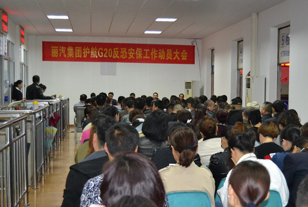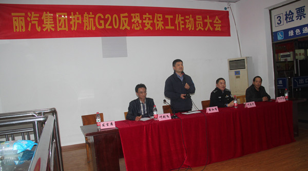 為切實加強集團(tuán)公司反恐安保防范的各項工作,4月14日晚,麗汽集團(tuán)護(hù)航G20反恐安保工作動員會在客運東站候車室召開。集團(tuán)公司總經(jīng)理薛和有、反恐支隊長葉亞平、集團(tuán)公司安全保衛(wèi)稽查部經(jīng)理葉少華出席會議,東站全體人員、各運輸單位領(lǐng)導(dǎo)班子及安全人員共200余人參加大會。會議由集團(tuán)公司總經(jīng)理助理葉劍飛主持。