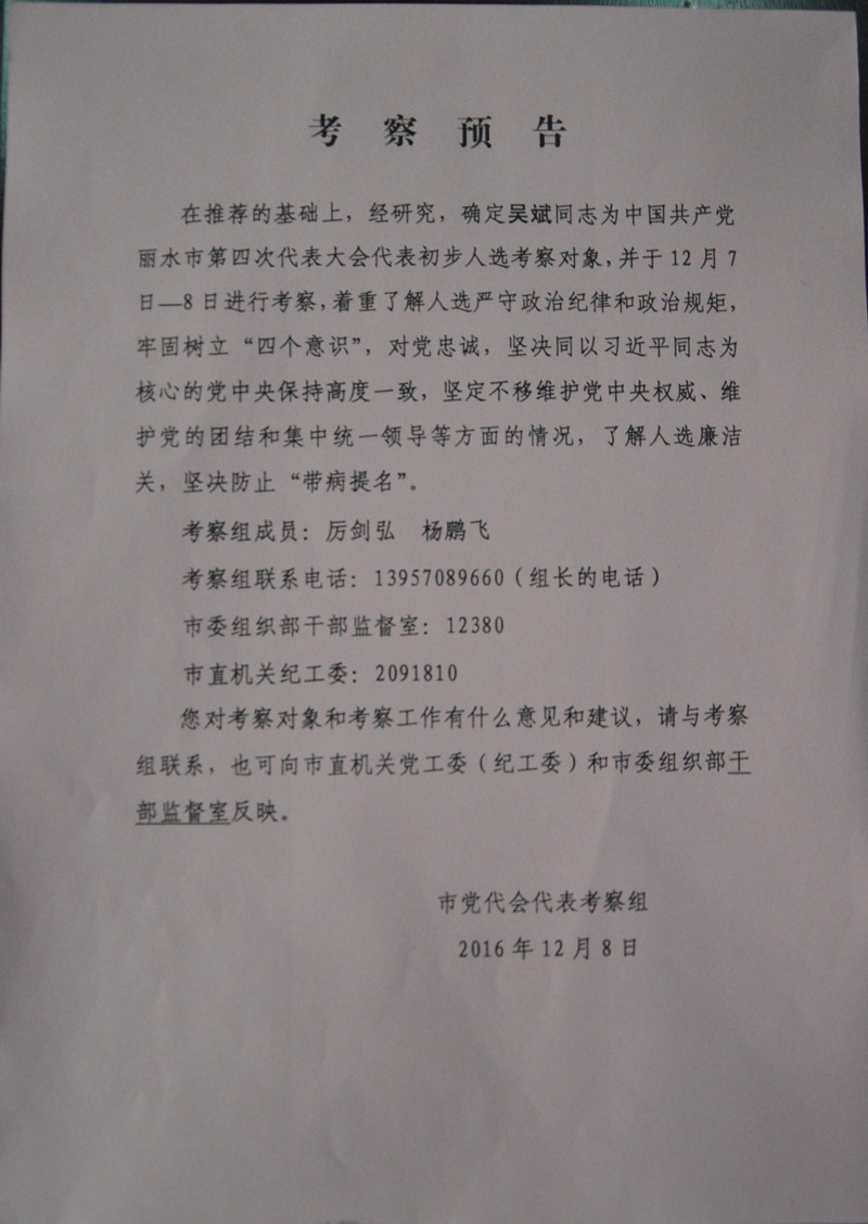 蓮都區(qū)人大代表候選人初步人選考察預告