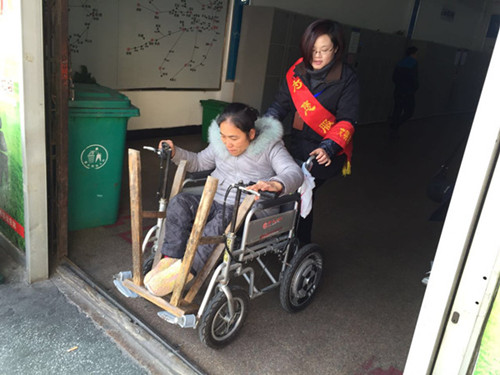 司機(jī)看見了,也過來搭把手,兩人一起把殘疾乘客子扶上了車。殘疾乘客坐到位置后,楊嬌妹熱心地幫她系好了安全帶。