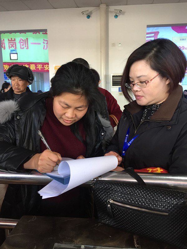 “10:42到云和的旅客,請拿好行李物品,出示車票,排隊檢票上車?!痹捯粑绰洌每蛡兙图娂娡鶛z票臺前走來。不一會兒,一車旅客就剩一位還沒檢票了。尤麗娟拿起話筒正準備再次催促,這時一位里拿著一根木棍,正借著木棍的力量準備站起身的阿姨引起了尤麗娟的注意。“阿姨,你是到云和的嗎?”阿姨答道:“是的,我腿腳不方便,所以就等他們先檢完了我再來檢了?!闭f著,尤麗娟趕緊上前扶了她一把。幫她檢完票后,尤麗娟又一直扶著她上車。由于腿腳不方便,要靠她自身的力量跟本無法邁上客車的臺階。尤麗娟叫阿姨一手扶著木棍一手扶著車子的扶手,自己則用雙手將阿姨的一條腿抱到車子的第一級臺階上,然后再用雙手撐著阿姨的腋下,讓她的另一只腳跨上臺階。就這樣一級一級,阿姨終于順利的坐上了車。這時,正準備下車的尤麗娟感覺到了自己的左腳膝蓋在隱隱作痛。原來在兩年前,尤麗娟的左腳膝蓋由于半月板受損動過手術(shù),醫(yī)生交待不要讓膝蓋過度受力。但是只要見到這些腿腳不變的旅客,尤麗娟就經(jīng)常會忘了醫(yī)生的囑咐,在旅客需要幫助的時候,他總是這樣不會有絲毫地遲疑。