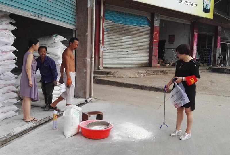 呂主席勸導商家保持門前環(huán)境,交談后,商家立即把門前衛(wèi)生打掃干凈,表示一定會做好門前三包工作。