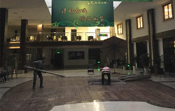 正在九城山貨布置現(xiàn)場(chǎng)的同事