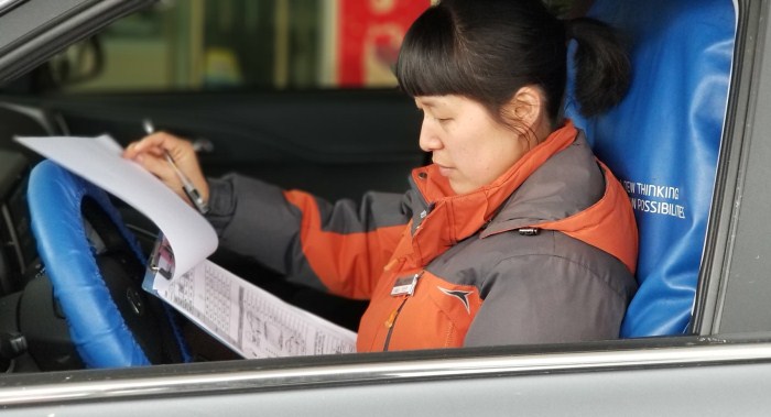 葉柳笑負責事故車接待。今年春節(jié)后,由于道路車流量大,事故車數(shù)量驟然變多,葉柳笑忙碌的身影在車間和接待處兩頭跑,連續(xù)的繁重工作她累病了。但她還是堅守在崗位上,直到售后經(jīng)理強制要求她回家休息,她也僅休息了一天。她說,大家都這么忙,我在家里真的是坐立不安啊。