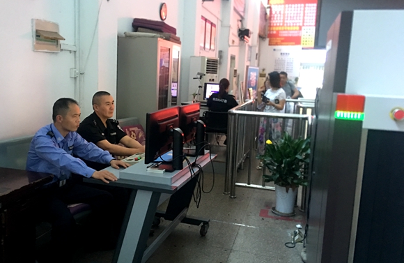 進(jìn)站安檢崗位上,保衛(wèi)稽查科員們認(rèn)真甄別禁止攜帶進(jìn)站的危險(xiǎn)品和違禁品,為廣大乘客的生命財(cái)產(chǎn)安全筑起安全防線。