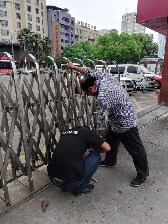 在車輛進(jìn)口處,“老戴”和副科長(zhǎng)余林峰還對(duì)電子門進(jìn)行了檢查,發(fā)現(xiàn)因?yàn)樵O(shè)備陳舊,有幾個(gè)滾輪已經(jīng)脫落,于是叫來(lái)科室里的其他成員幫忙,人多力量大,大家一起動(dòng)手,不一會(huì)兒就把電子門修好了。雖然修好門已經(jīng)是下班時(shí)間,但是他們并沒有急著回家,“老戴”和余林峰又檢查起了開關(guān)門遙控器,其他同志也分頭對(duì)站場(chǎng)各個(gè)角落的安全狀況進(jìn)行了檢查。