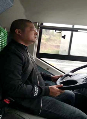 “我是這班車駕駛員,來,我?guī)湍!薄澳倪@件行李較大,我?guī)湍旁谶@個角落,您記一下,到時候您下車的時候直接到這找行李,如果拿不出來喊我們一聲就行”。由于返鄉(xiāng)的民工行李較多,班車行李艙容量有限,檢票上車時葉東洪總是站在行李艙旁接過每一位乘客的行李并小心地安放在行李艙內?!奥闊┠懔藥煾怠薄皫煾堤兄x你了”“師傅你人真好”。面對乘客的道謝葉東洪總是微笑答道:“沒事沒事,應該的,應該的?!?br/>“旅客朋友們大家好,我是本次行程的駕駛員葉東洪,這是我的同事夏建飛,歡迎乘坐本次班車,路上期間如果有什么要求或者需要幫助隨時歡迎和我們提出,我們會竭誠為您服務?!比~東洪檢查完每位乘客的安全帶后,隨著行車員的一聲指令,車輛緩緩駛出發(fā)車區(qū)踏上返鄉(xiāng)行程。