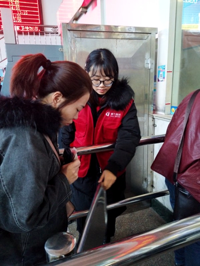 哪里需要哪里就有身著“紅背心”志愿者的身影,進(jìn)站口,志愿者們幫旅客搬運(yùn)行李;無人售票機(jī)前志愿者指導(dǎo)旅客自助購票;人工售票處前志愿者有序維護(hù)秩序……