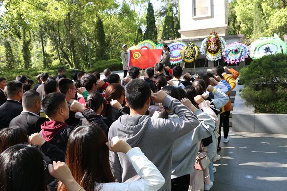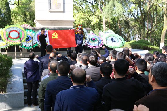 “青山綠水長留生前浩氣,蒼松翠柏堪慰逝后英靈”。我們今天的幸福生活是革命烈士們?cè)⊙獖^戰(zhàn)換來的。為了更好地學(xué)習(xí)他們的思想、繼承他們的遺志、發(fā)揚(yáng)他們的精神,集團(tuán)公司黨委書記葉茂帶領(lǐng)全體黨員重溫了入黨誓詞,團(tuán)委書記陳躍飛也帶領(lǐng)全體團(tuán)員在烈士碑前重溫了入團(tuán)誓詞。