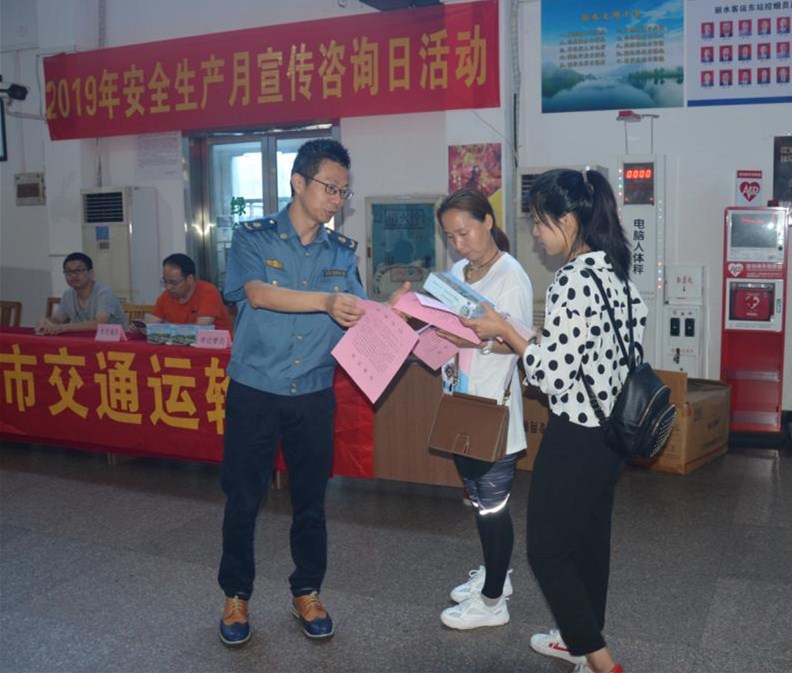“您好,請不要攜帶易燃易爆物品上車”“ 請不要乘坐無牌無證的黑車” “這是平安出行宣傳單,您可以帶一份回去看看”……6月13日,市交通運輸局、市道路運輸管理局、市港航管理局的宣傳人員走進(jìn)客運東站候車廳,圍繞“防風(fēng)險、除隱患、遏事故”活動主題,開展安全生產(chǎn)月宣傳活動,為廣大乘客送去“平安出行 安全乘車”宣傳單。
