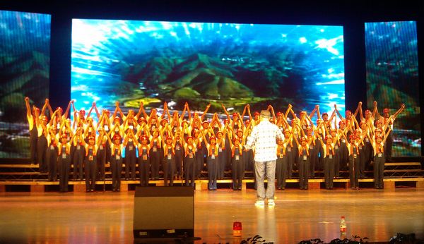 集團(tuán)公司合唱隊為本次頒獎晚會送上一曲大合唱《咱們工人有力量》。