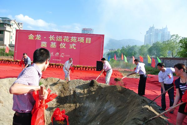 2012年8月26日上午,金龍.長運(yùn)花苑商住房項目舉行隆重開工奠基儀式。儀式現(xiàn)場,地毯披紅,人潮涌動,彩旗飄飄,音樂雄壯激昂,高空氣球和氣拱門更是增添了會場的熱烈。