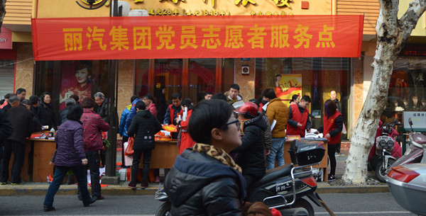 活動現(xiàn)場,黨員們充分發(fā)揮職能優(yōu)勢和個人特長,熱心地為大家介紹汽車購票方式、售票網(wǎng)點(diǎn),解答汽車保養(yǎng)維修知識,向過往群眾送上喜慶洋溢的“?!弊?,小小的服務(wù)攤點(diǎn)前充滿了濃濃的春意。剛好在中山街路段工作的環(huán)衛(wèi)工人接過麗汽集團(tuán)黨員送上的福字和春聯(lián),一句“平時您為麗水市民服務(wù),今天讓我們麗汽集團(tuán)的共產(chǎn)黨員向您送上新春祝福!”讓他臉上樂開了花。