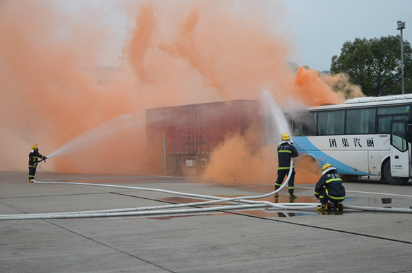 本次演練分兩個(gè)科目,分別是科目一汽車客運(yùn)站恐襲事件應(yīng)急處置演練,模擬在一名乘客過(guò)安檢時(shí)被發(fā)現(xiàn)攜帶管制刀具,安檢人員開(kāi)包檢查過(guò)程中乘客拔刀行兇,車站工作人員按照預(yù)案要求,在各部門(mén)協(xié)作下制服行兇乘客保持站場(chǎng)正常運(yùn)行的場(chǎng)景。和科目二交通事故應(yīng)急處置演練,模擬在330國(guó)道風(fēng)化地段丁字路口兩車碰撞后起火燃燒,在各部門(mén)有效配合下合理處置、及時(shí)接駁乘客的場(chǎng)景。