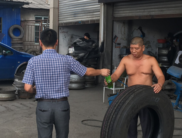 王斌副經(jīng)理為車間的修理工送上清涼,修理工接過后連說:“謝謝領(lǐng)導(dǎo)關(guān)心?!?/p>