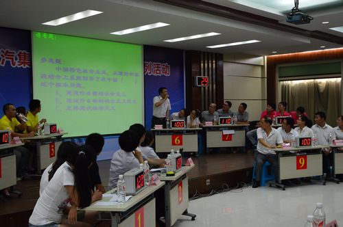 “十八大報告指出:要建設(shè)什么樣的馬克思主義執(zhí)政黨------搶答開始?!彪S著主持人的一聲令下,最吸引眼球的搶答環(huán)節(jié)開始了。10支代表隊快速摁下?lián)尨鹌鳎@里比的不僅是黨史知識,更是快速反應(yīng)的能力。40道搶答題,有的隊反應(yīng)快速,答題準(zhǔn)確,加上10分;有的隊答題心切,違規(guī)搶答,被倒扣分?jǐn)?shù);有的隊搶到了,答題不是很準(zhǔn)確,也被倒扣分?jǐn)?shù)。臺下黨員隨著他們的表現(xiàn)一會會心一笑,一會兒加油鼓掌,全場氣氛熱烈。