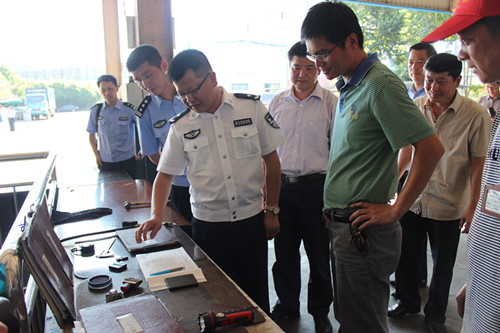 為貫徹落實公安部交管局《關于組織開展道路交通安全大檢查交叉檢查的通知》精神,推動全面開展道路交通安全大檢查活動,督促各地落實“零容忍、全覆蓋、嚴執(zhí)法、重實效”要求和有關重點工作措施,7月23日下午,公安部道路交通安全大檢查異地交叉檢查組蒞臨麗水市運輸集團有限公司檢查指導安全生產工作。市公安局副局長、交通警察支隊支隊長陳志斌,集團公司總經理薛和有陪同檢查。