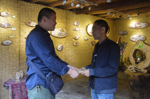 今天下午,章雙林帶著5000元愛心款,專程冒雨從麗水趕往古堰畫鄉(xiāng),看望雷發(fā)榮并勉勵他勇敢地與病魔作斗爭,希望他早日康復。