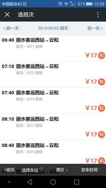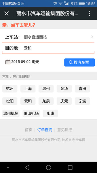 (3)點(diǎn)擊“購(gòu)票”,進(jìn)入購(gòu)買(mǎi)服務(wù)頁(yè)面,在上車(chē)站位置選擇“麗水客運(yùn)東站”或“麗水客運(yùn)西站”。