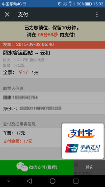 (5)旅客購(gòu)票后最遲發(fā)車(chē)前10分鐘憑身份證或取票密碼到自助售票機(jī)取票。