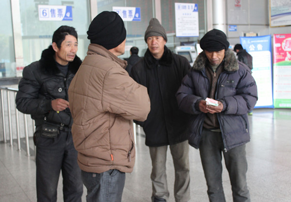 早上8:30,老吳和他的工友們早早的收拾好行李,到西站買好下午1:25去泰順的車票,這會兒拿到票,哥兒幾個(gè)才安心的準(zhǔn)備去吃早飯。他們按捺不住心中的喜悅說:“在外辛苦了一年能在春運(yùn)第一天順利買到車票回家過年,很開心!”