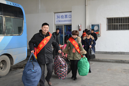 21日,隨著春節(jié)的日益臨近東、西站客流量明顯增多,兩站“春運志愿者服務隊”今天正式拉開了服務序幕。上午9:00一個個志愿者服務隊員們身披彩帶,他們有的給旅客送熱姜茶、有的幫助旅客自助購票,有的引導旅客安檢,有的在售票廳維持秩序,有的穿梭于候車旅客中間服務,“我來幫您提行李”,“大爺我攙扶您上車”,“出門要看管好行李”,一句句貼心的溫馨提示讓旅客們感到溫暖,一次次主動幫助給旅客們留下美好記憶,志愿服務給回家過年的旅客們鋪就了方便、安全、和諧的旅途。
