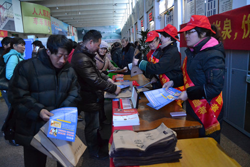 為進(jìn)一步建設(shè)平安蓮都,共創(chuàng)和諧社會,2月13日上午,東站借春運來往旅客多、宣傳效果廣泛的契機,聯(lián)合巖泉街道在東站候車廳內(nèi)向廣大旅客宣傳“珍愛生命,遠(yuǎn)離毒品”。社區(qū)禁毒干事趙素珍女士和東站春運志愿者服務(wù)隊的隊員們,向廣大旅客、車主和職工發(fā)放了禁毒宣傳資料手冊、青少年禁毒漫畫等禁毒宣傳資料;同時還給現(xiàn)場的旅客耐心講解了毒品的危害。通過此次宣傳活動,使廣大旅客進(jìn)一步認(rèn)清毒品的危害,增強自我保護(hù)的意識,自覺抵制和遠(yuǎn)離毒品。