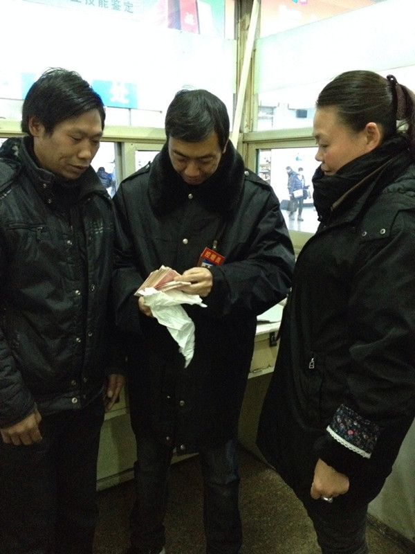 經(jīng)了解,這個(gè)男子名叫鄧干武,貴州人,文盲,這16400元錢(qián)是他打工過(guò)一年的攢下的辛苦錢(qián),也是一家老小過(guò)年錢(qián)。因?yàn)椴蛔R(shí)字,所以也沒(méi)存銀行,而是用餐巾紙包好藏在一個(gè)很不起眼的背包夾層里。失而復(fù)得的錢(qián),讓鄧干武欣喜無(wú)比,而東站員工的行為,更溫暖了人心,溫暖著社會(huì)。
