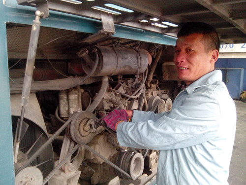 作為修理車間的一名修理工,潘瑞章同志在春運(yùn)期間堅(jiān)持早上班,晚下班,工作中不怕臟,不怕累。其所在的組有一輛跑嘉興的長途班車,每天跑來回,早上很早出車,晚上回來很晚,為了不影響次日發(fā)車班次,晚上不管車輛回來多晚他都會及時(shí)地把工作完成。
