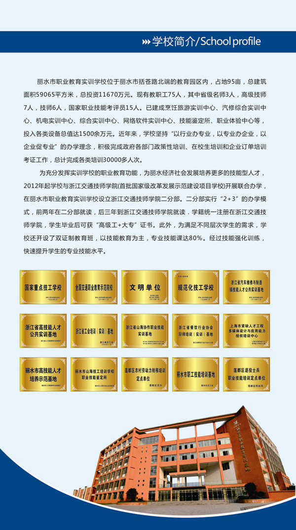 浙江交通技師學院二分部 麗水職業(yè)教育實訓學校2014年招生簡章