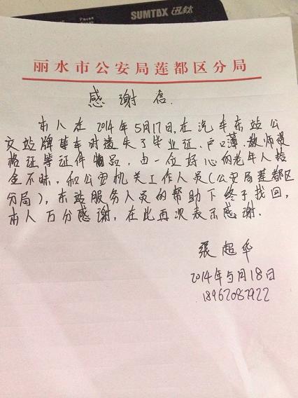 當(dāng)失主接到服務(wù)臺(tái)的電話時(shí)非常激動(dòng),并給東站寫(xiě)了一封感謝信,感謝東站的熱心服務(wù)。
