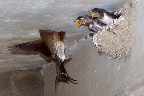 小時(shí)候我總喜歡觀察燕子。有時(shí),我饒有興致地仰著頭,看它們喂養(yǎng)孩子。只要大燕子一出現(xiàn),它們的孩子全部從巢里齊刷刷地仰起腦袋,露出黃色小嘴巴,嗷嗷叫嚷。有時(shí)無聊,我趴在外婆家閣樓的稻草堆上,看屋檐外的一群燕子停在閣樓的邊沿,當(dāng)有一只燕子飛近時(shí),燕子們都拍翅,叫喚著相迎。我看懂了它們的語言,它們在進(jìn)行友好的表示。是同類,盡管陌生,它們卻能友好相處,沒有排斥,沒有人類社會的互相傾軋。我想燕子與人類的相處是動(dòng)物和人類和諧相處的典范,人類接受了燕子并把燕子當(dāng)作吉祥物供養(yǎng),這是幾千年來一直延續(xù)下來的。就連北京舉辦奧運(yùn)會,五個(gè)福娃中也有一只展翅飛翔的燕子“妮妮”,其造型創(chuàng)意來自北京傳統(tǒng)的沙燕風(fēng)箏,寓意著妮妮把春天和喜悅帶給人們。