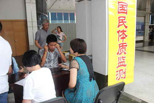 7月3日上午,市國(guó)民體質(zhì)監(jiān)測(cè)中心工作人員走進(jìn)客運(yùn)西站候車(chē)室,為車(chē)站的工作人員、司乘人員和過(guò)往的旅客開(kāi)展國(guó)民體質(zhì)監(jiān)測(cè)活動(dòng),通過(guò)這樣的方式采集全市各類(lèi)人群的體質(zhì)監(jiān)測(cè)數(shù)據(jù),為引導(dǎo)群眾科學(xué)開(kāi)展全民健身活動(dòng)提供科學(xué)數(shù)據(jù)。
