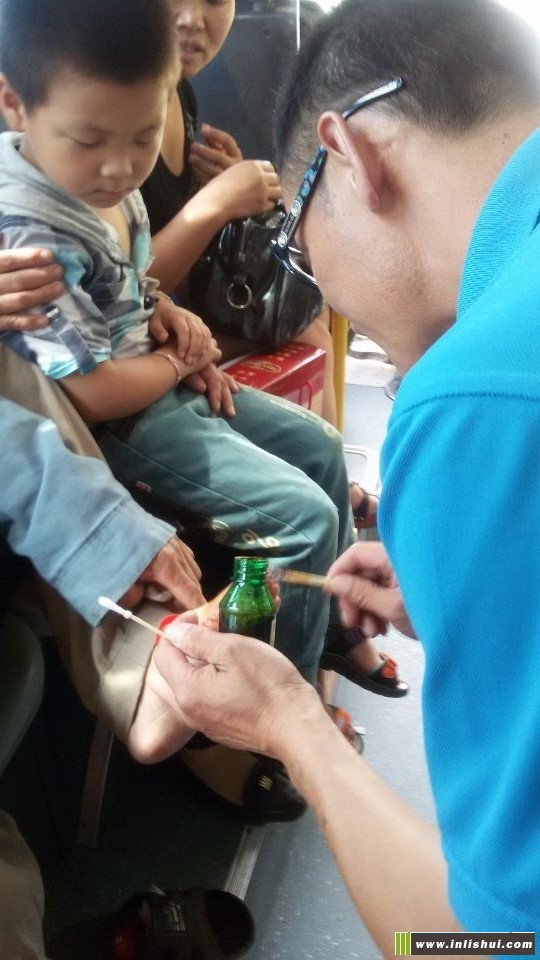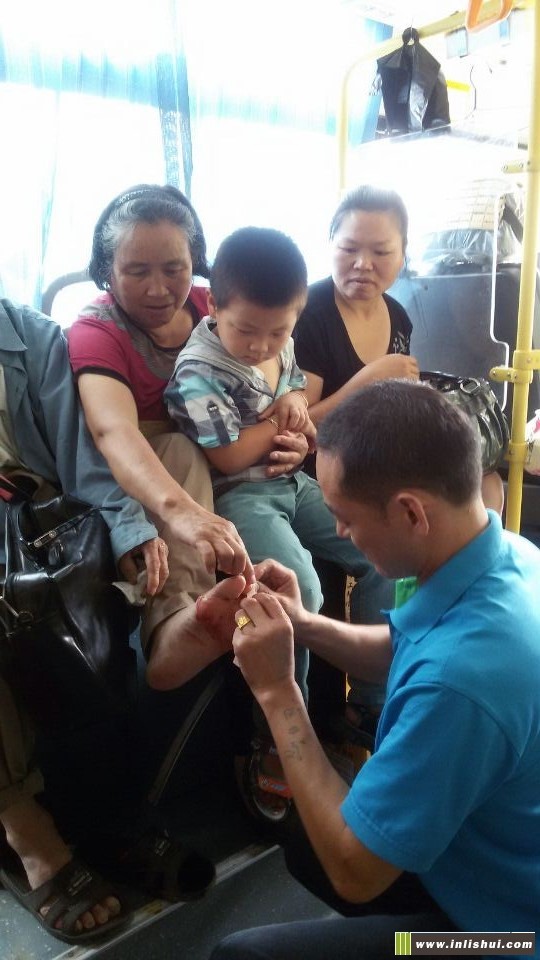 前天網(wǎng)友“鷹鷹”在論壇上發(fā)貼說:7月2日下午3點20分,我在中東路口站牌,乘301路公交車去鄉(xiāng)下老媽家。路上,由于旅客很多,一個大爺站在后門邊,不小心腳趾被門碰開一個口子,我們旅客不知道車上備有常用藥物,只知道給他餐巾紙以止血。公交車駕駛員得知有乘客傷了出血,馬上將車子停靠邊上,然后,從車上的急救箱里取出:碘酒、藥水棉花、創(chuàng)口貼等,因為老人是坐在座位上的,司機幾乎是跪在車廂地面,老人的腳也有些臟,但司機托著老人腳,細心的為大爺擦洗、消毒、包扎。他的行為,讓滿車的旅客齊贊他是一個好師傅。