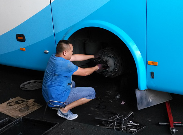 走進車輛維修車間,一股熱浪迎面撲來,耳邊傳來輪胎拆裝機的轟鳴聲,眼前我們可以看見手拿各種工具的維修工人們忙碌的身影。他們有的在拆輪胎,有的在焊接,有的在拆裝螺帽,有的在清洗設備…灼眼的閃光,飛濺的火星,淺藍的煙霧,稍微有點嗆鼻的氣味,或蹲或站,左手緊握著防護罩,右手使著電焊槍,豆大的汗水順著臉頰流下來。廣大一線員工不畏高溫一如既往地堅守在各自崗位上,為企業(yè)的生產(chǎn)經(jīng)營付出了艱辛的汗水,為事業(yè)貢獻了力量。師傅們,你們真的辛苦了!