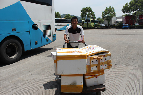 要論炎夏最辛苦的崗位,很多人自然會想到行李房的裝卸工。行包裝卸工冒著熱浪辛勤作業(yè),準時地收發(fā)一批批貨物。行包房收發(fā)的貨物很多都是大件貨物,輕的幾十斤,重的二、三百斤,一批貨物裝卸下來,裝卸工的衣服都能擰出水來。37度的高溫,平常人在太陽底下站上幾分鐘都受不了,行包裝卸工卻要負重往返在車輛和行李房之間,絕大部分時間都是在露天發(fā)車區(qū)作業(yè),其辛苦可想而知。雖然被熱浪蒸得暈暈乎乎的,他們卻一點也不敢大意。這么熱的天氣,海鮮水產、鮮活貨物很容易腐敗變質,一個不小心錯發(fā)誤發(fā)帶給客戶的可能不僅是時間精力的損耗,更會造成客戶直接的經濟損失。所以即使再熱再辛苦,清點、裝卸、核對,整個流程他們絲毫沒有一點含糊!
