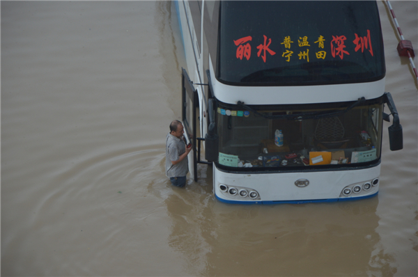 浙南網(wǎng):浙江麗水遭遇50年一遇大洪水“水中”的東站