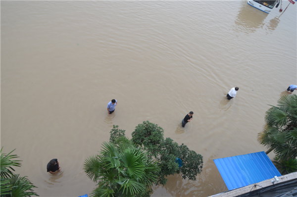 集團公司公會主席呂麗君走到小轉盤路口時,大水已經(jīng)沒過大腿