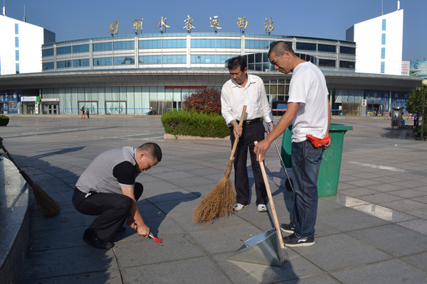 勞動(dòng)中,大家齊心協(xié)力、分工合作,用夾子把綠化帶中的紙屑、塑料袋、煙頭等一點(diǎn)點(diǎn)的夾出來(lái),一點(diǎn)點(diǎn)地鏟除地面殘留的口香糖,我掃地,你倒垃圾,配合十分默契。雖然大家干的額頭冒汗、蹲的雙腳發(fā)麻,但是誰(shuí)都沒(méi)停下手中的工具。經(jīng)過(guò)黨員的共同努力,西站站前廣場(chǎng)的地面變得更干凈了。