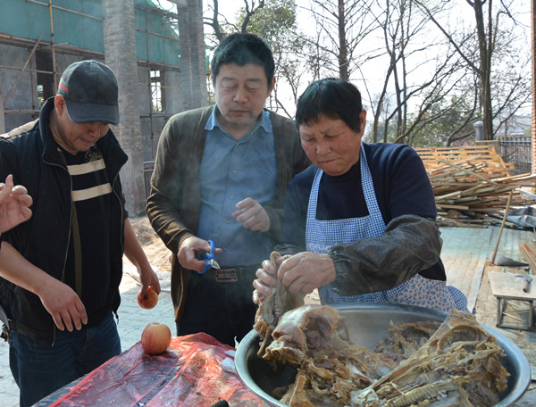 這邊包餃子的問題正討論的激烈,那邊熱氣騰騰的豬頭也出鍋了?!把?,這么大的豬頭,小時候過年的感覺”?!皩Π。瑢Π?,這種氣氛,這種味道,太有紀念意義了”。“來來來,我拍張照片,微信朋友圈曬一曬”。黃色餃子、綠色餃子、紅色餃子、紫色餃子相繼的出鍋了,燒烤的食品也相繼出爐,大家互相品評,因為都是自己動手參與,一切都變成了美食。