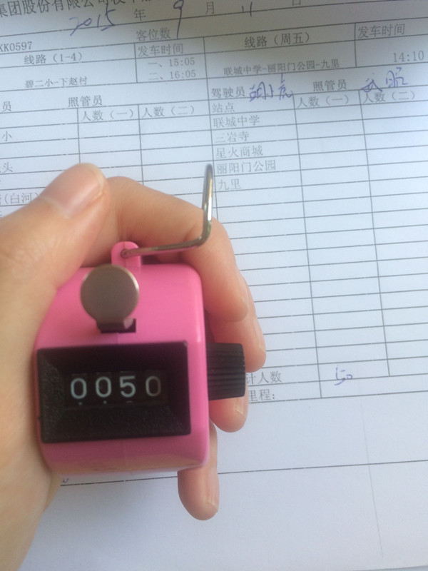 9月7日,新學(xué)期第一天,教育局會(huì)同安監(jiān)局、交通局、交警隊(duì)等主管單位在碧湖小學(xué)組織召開(kāi)了校車安全管理現(xiàn)場(chǎng)會(huì),校車分公司照管員武昭的一個(gè)小計(jì)數(shù)器讓現(xiàn)場(chǎng)各主管單位的領(lǐng)導(dǎo)和碧湖小學(xué)的老師們都露出了滿意的笑容。