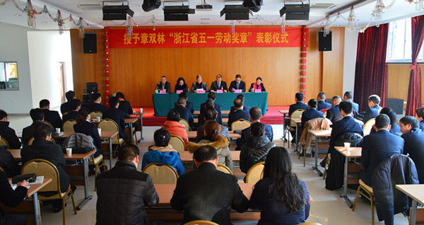 授予章雙林省“五一勞動(dòng)獎(jiǎng)?wù)隆北碚么髸?huì)在麗水舉行
