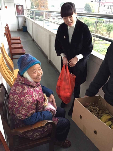 當(dāng)我們的團(tuán)員為老人捧上水果時, 老人們甚至微笑著流下感動的淚水,看著老人們眼含淚花的樣子,我們的內(nèi)心有股莫名的心酸,也為自己參加今天的活動而感到激動和自豪。
