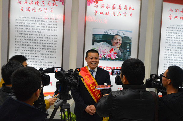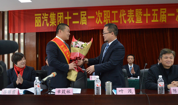 朱祖新說(shuō):“章雙林受到全國(guó)(層面)的表彰,他的事跡非常感人。特別是他領(lǐng)到獎(jiǎng)金后,首先想到的是要捐贈(zèng)給蓮都區(qū)雅溪鎮(zhèn)里東村的困難群眾,這種慈心和善舉非常美好,確實(shí)值得大家學(xué)習(xí)?!?br/> 麗水市總工會(huì)黨組書(shū)記,常務(wù)副主席陳子民也發(fā)表了熱情洋溢的講話。陳子民說(shuō):“麗汽集團(tuán)一貫實(shí)施的強(qiáng)化員工素質(zhì)提升、民主管理、員工關(guān)愛(ài)、創(chuàng)新創(chuàng)效和黨群共建“五大工程”,有效培育了一支一流的員工隊(duì)伍和積極向上的企業(yè)文化。在麗汽集團(tuán)的最美創(chuàng)建活動(dòng)中,先后涌現(xiàn)一大批先進(jìn)模范人物,有“最美司機(jī)”吳斌、“全國(guó)見(jiàn)義勇為英雄司機(jī)”章雙林,還有被市委書(shū)記王永康專(zhuān)門(mén)批示“向明霞同志表示敬意”的最美辦公室主任徐明霞等杰出代表。就在剛才,全國(guó)見(jiàn)義勇為英雄司機(jī)章雙林赴京表彰載譽(yù)歸來(lái),馬上就向里東災(zāi)區(qū)捐出“全國(guó)見(jiàn)義勇為英雄司機(jī)”的獎(jiǎng)金,讓我深受感動(dòng)。這些先進(jìn)模范人物能在麗汽集團(tuán)不斷涌現(xiàn),決非是偶然。它一方面是因?yàn)辂惼瘓F(tuán)有著深厚的企業(yè)傳統(tǒng)文化,是一個(gè)充滿(mǎn)正能量的優(yōu)秀企業(yè);另一方面更是麗汽集團(tuán)長(zhǎng)期注重企業(yè)文化培育的結(jié)果?!?br/> 在章雙林發(fā)言之前,麗汽集團(tuán)總經(jīng)理薛和有向大家報(bào)告了章雙林獲得“全國(guó)見(jiàn)義勇為英雄司機(jī)”和“中國(guó)好司機(jī)”并北京人民大會(huì)堂接受表彰的情況。麗汽集團(tuán)黨委書(shū)記、董事長(zhǎng)葉茂代表集團(tuán)公司全體干部員工向章雙林獻(xiàn)花,歡迎英雄載譽(yù)歸來(lái)!