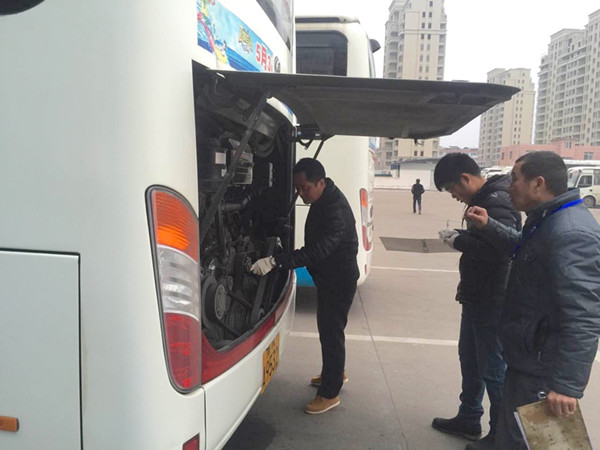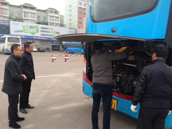 為積極響應(yīng)集團(tuán)公司關(guān)于切實(shí)做好強(qiáng)寒潮天氣安全生產(chǎn)工作,1月20日上午,長(zhǎng)途運(yùn)輸分公司梁巍經(jīng)理、王斌副經(jīng)理組織安全稽查科、機(jī)務(wù)技術(shù)科人員,結(jié)合每月的愛車?yán)z查對(duì)單位所屬公營(yíng)車輛發(fā)動(dòng)機(jī)倉(cāng)、電瓶、輪胎,車上的安全設(shè)施進(jìn)行防凍措施的重點(diǎn)檢查,要求駕駛員及時(shí)添加防凍液,對(duì)加水的車輛,要求回場(chǎng)后一律放凈水箱里的水,確保營(yíng)運(yùn)車輛技術(shù)狀況良好。